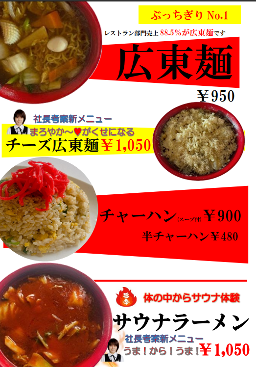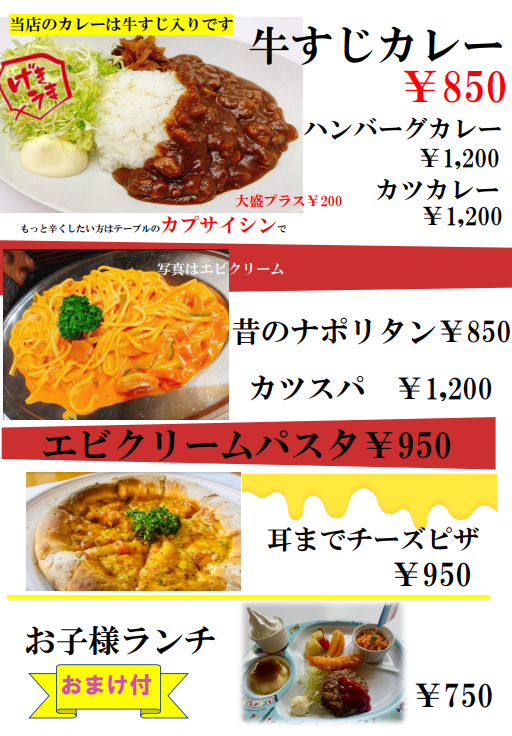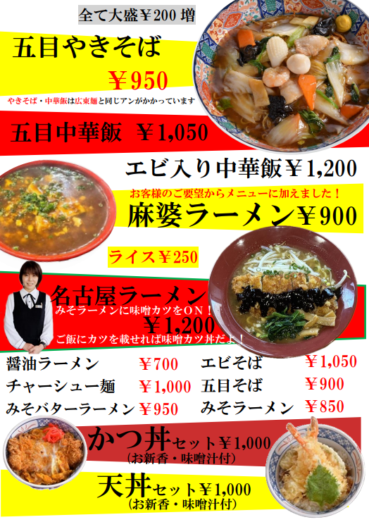 和・洋・中・寿司・喫茶と多彩なメニューが揃っているので、食べたいメニューがきっと見つかります。